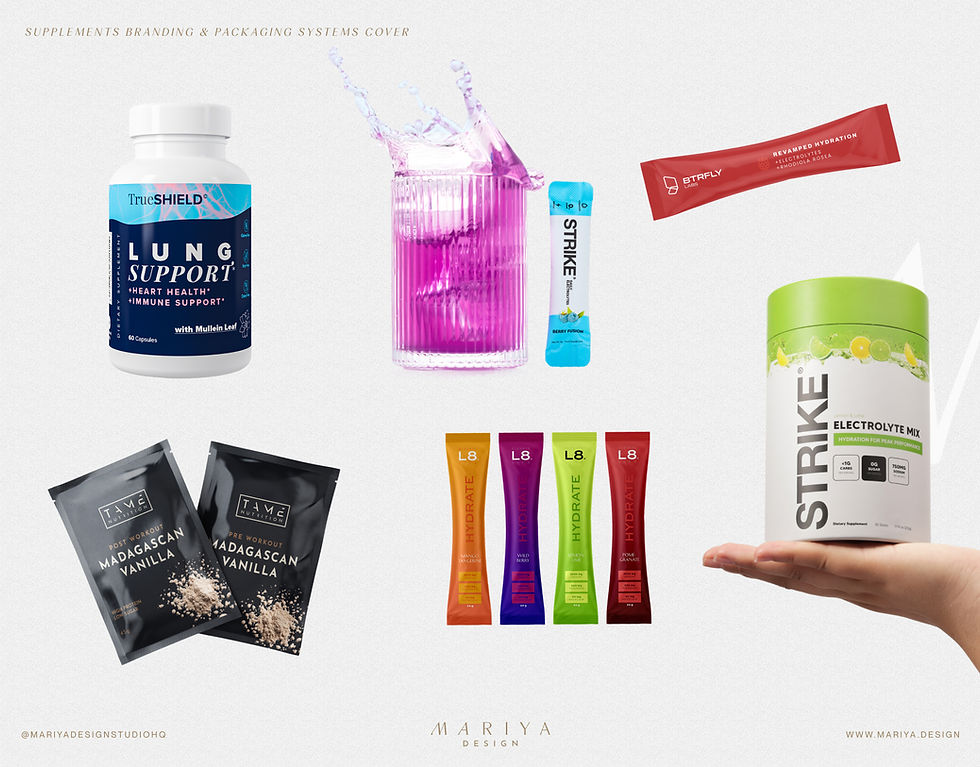 From immunity to performance and wellness, Mariya Design builds supplement brand systems that work. Each project is structured for clarity, compliance, and scale — production-ready packaging that expands across SKUs and survives long-term.